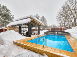 Круглогодичный бассейн размером 3х6 метров и глубиной 1,5 метра, подогревается до 30 градусов и имеет эффектную подсветку.