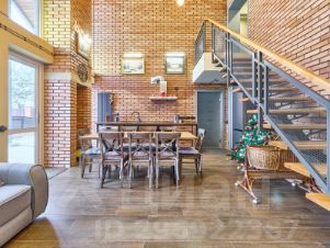 Помимо этого, в доме есть большая гостиная, соединённая с кухней.