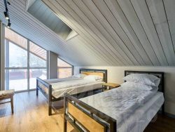 В одной спальне находится двухспальная кровать, во второй - двухспальная и односпальная кровати, а в третьей - раскладывающийся диван.