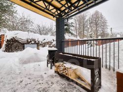 На участке вы сможете воспользоваться крытой площадкой с мангальной зоной, барбекю и казаном.