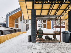 На участке вы сможете воспользоваться крытой площадкой с мангальной зоной, барбекю и казаном.