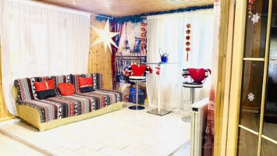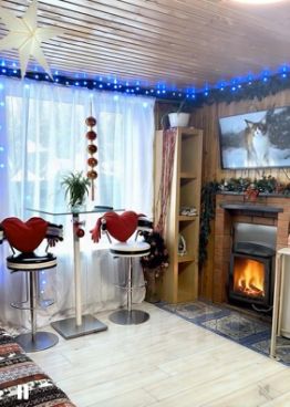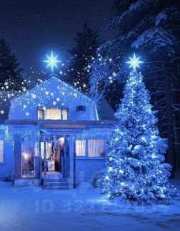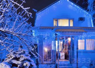 Домик словно игрушка — уютный, светлый, украшенный синими гирляндами, которые вечерами превращают его в сказку. Здесь легко почувствовать тишину, тепло и душевный покой.