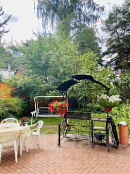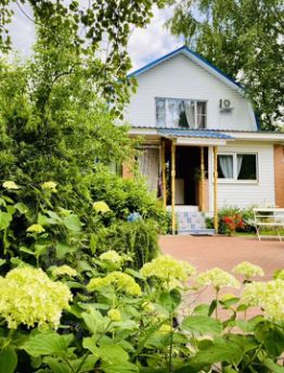 Я создала пространство для отдыха сердцем и телом: можно топить баню, наблюдать за огнём в камине, ужинать на веранде или гулять по саду среди сосен, лип и берёз, играть в бадминтон на лужайке. А совсем рядом — река Клязьма и заливные луга.