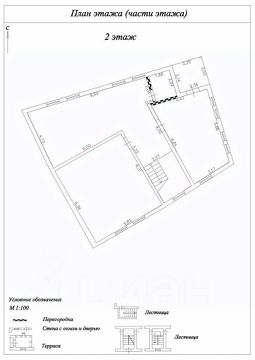 Высота потолков: 1-й этаж = 3,8 м, 2-й этаж = 2,6 м.