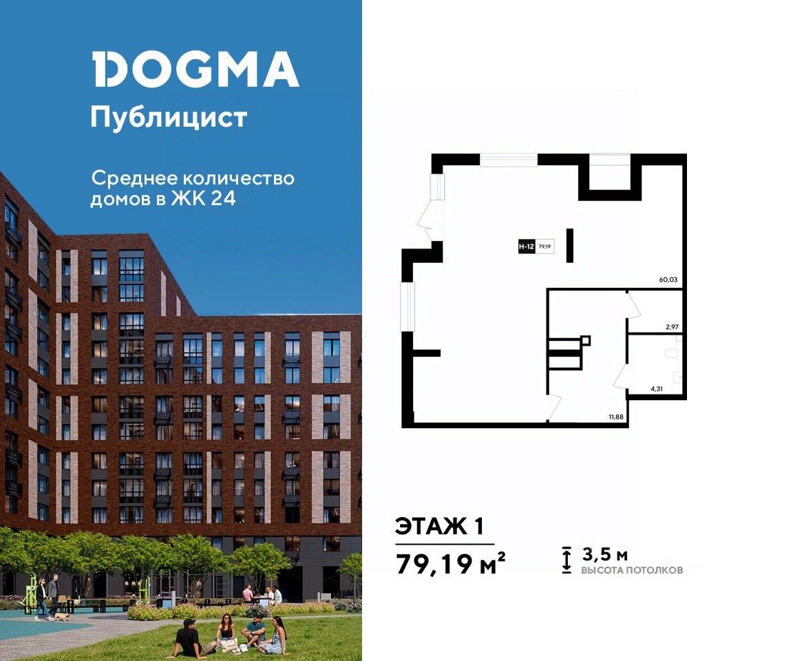 В продаже от DOGMA! Корпус . Срок сдачи: 4 кв. 2026, общей площадью79.19 кв.м., на 1 этаже. На территории квартала появятся пешеходныебульвары с местами для отдыха, детские и спортивные площадки, свой собственный лес для прогулок. Будет построено пять детских садов на 1500 мест, две школы для 3 300 учеников, физкультурно-оздоровительный комплекс и поликлиника, рассчитанная на 432 посещения в смену. В зелёных дворах не будет машин. Для автомобилистовбудет возведено семь многоуровневых паркингов на 4 041 машино-место, 14 подземных паркингов для 3 780 автомобилей, гостевые парковки на 2 194 места. Первые этажи домов займут коммерческиепомещения. В шаговой доступности от квартала находятся торговые центры с кинотеатрами, строительные гипермаркеты. Дворец спорта с бассейном. До пляжа реки Серебрянки — 17 минут пешком. На машине за семь минут можно доехать до дендропарка ВНИИЛМ, за 30 минут — до Национального парка "Лосиный остров".