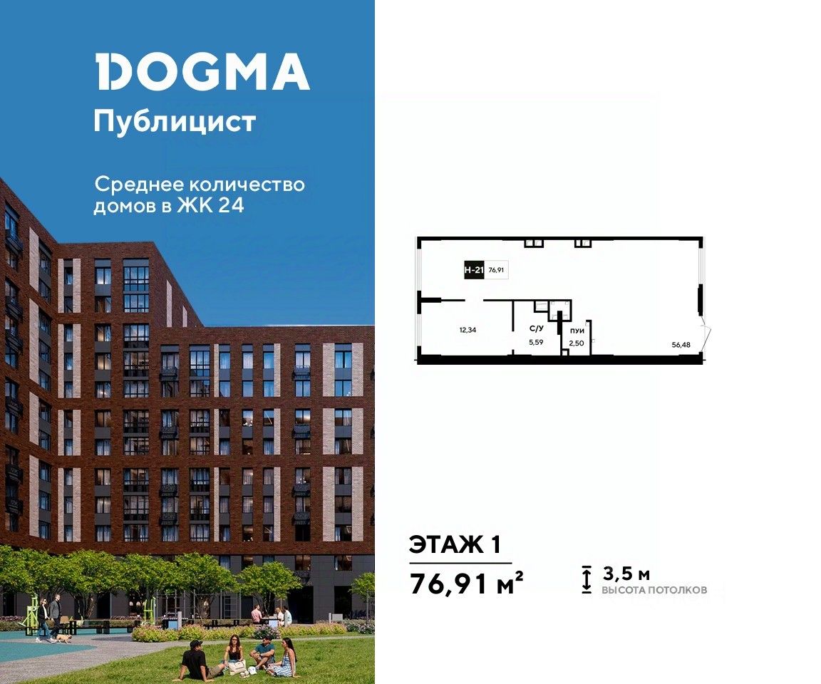 В продаже от DOGMA! Корпус . Срок сдачи: 4 кв. 2026, общей площадью76.91 кв.м., на 1 этаже. На территории квартала появятся пешеходныебульвары с местами для отдыха, детские и спортивные площадки, свой собственный лес для прогулок. Будет построено пять детских садов на 1500 мест, две школы для 3 300 учеников, физкультурно-оздоровительный комплекс и поликлиника, рассчитанная на 432 посещения в смену. В зелёных дворах не будет машин. Для автомобилистовбудет возведено семь многоуровневых паркингов на 4 041 машино-место, 14 подземных паркингов для 3 780 автомобилей, гостевые парковки на 2 194 места. Первые этажи домов займут коммерческиепомещения. В шаговой доступности от квартала находятся торговые центры с кинотеатрами, строительные гипермаркеты. Дворец спорта с бассейном. До пляжа реки Серебрянки — 17 минут пешком. На машине за семь минут можно доехать до дендропарка ВНИИЛМ, за 30 минут — до Национального парка "Лосиный остров".