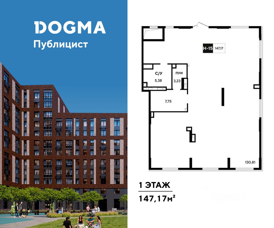 В реализации — коммерческое помещение свободного назначения в литере 11 общей площадью 147.17 кв.м. на 1 этаже от застройщика DOGMA в жилом квартале "Публицист", который расположен в г. Пушкино (Московская область).