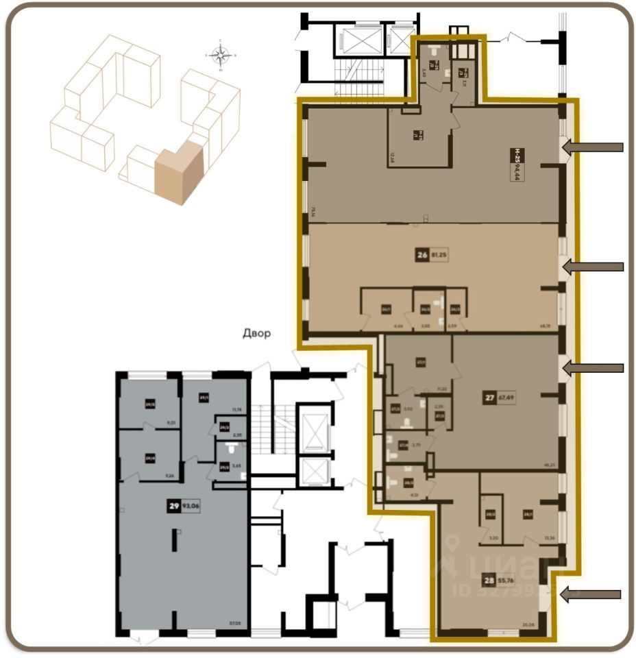 Объект угловой, расположен на 1-й линии въезда в ЖК