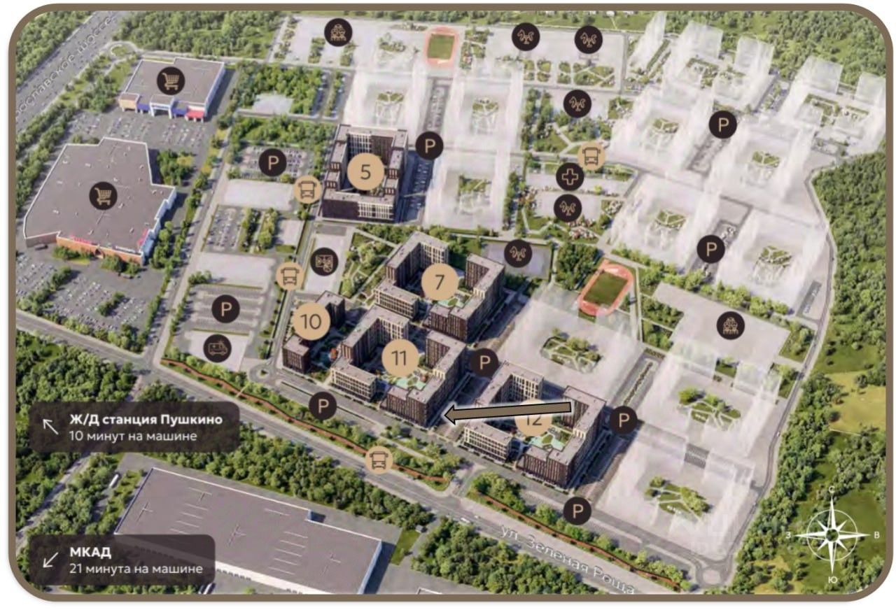 ЖК ПУБЛИЦИСТ состоит из 20 корпусов переменной этажности 9-15 этажей