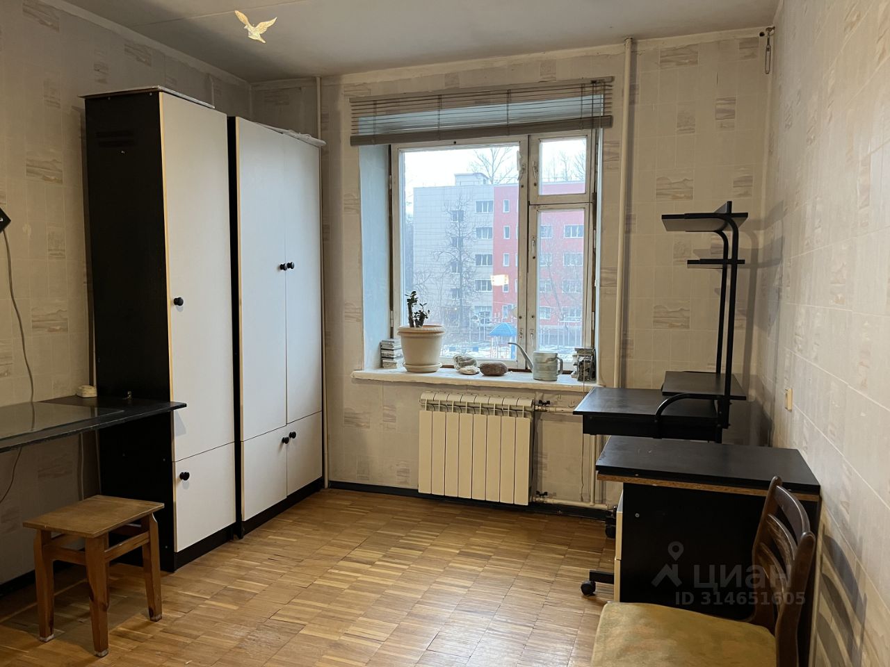 Вид из окон одно на восток (во двор), другие на запад