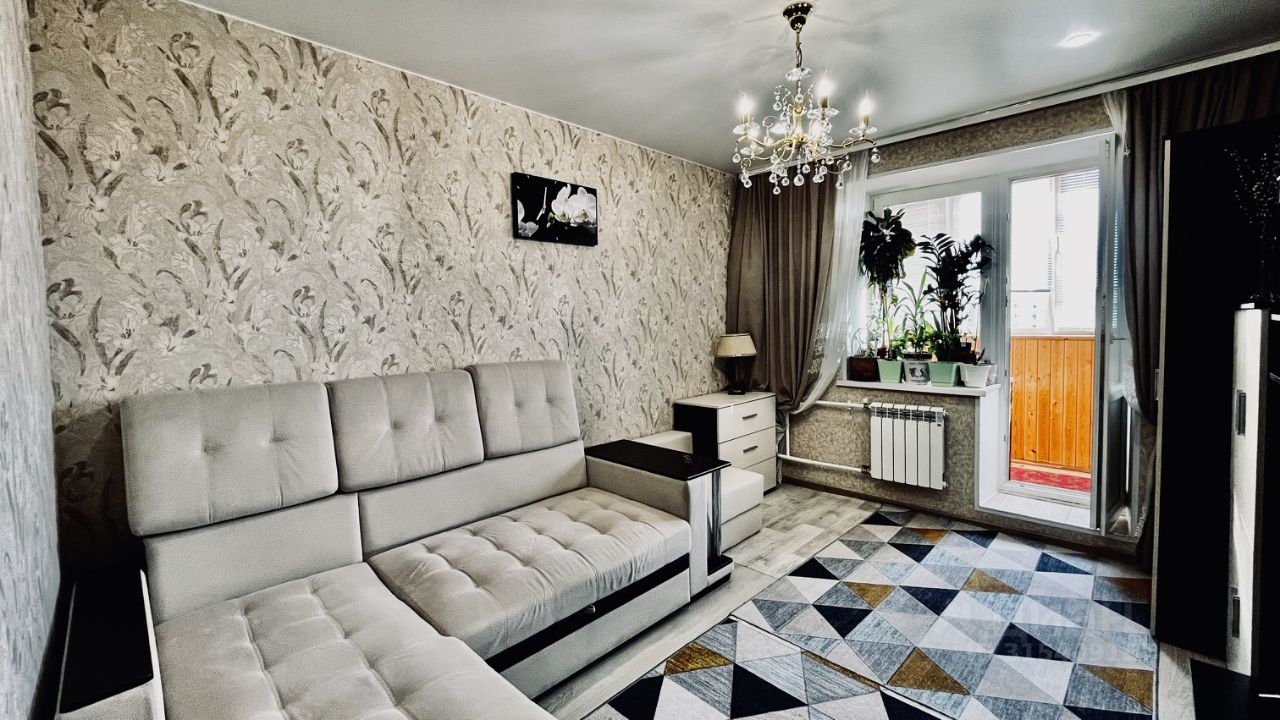 Комната чистая и просторная, большая часть мебели забирается, однако угловой диван можем оставить, если нужно. Радиатор исправен, проблем с ним не было вообще.