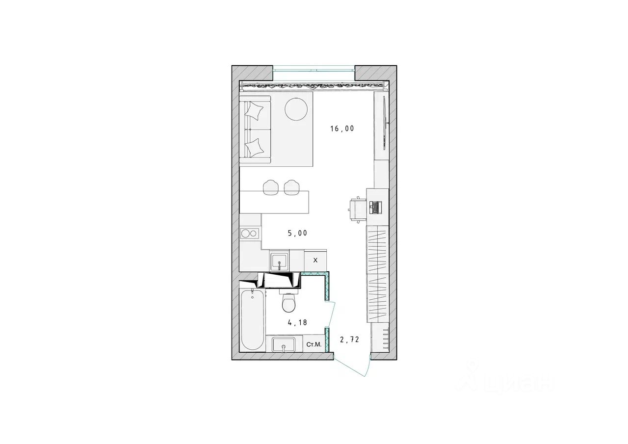 Продаётся студия в сданном доме (Корпус 2), срок сдачи: 4-кв. 2023, общей площадью 28.00 кв.м., на 16 этаже.