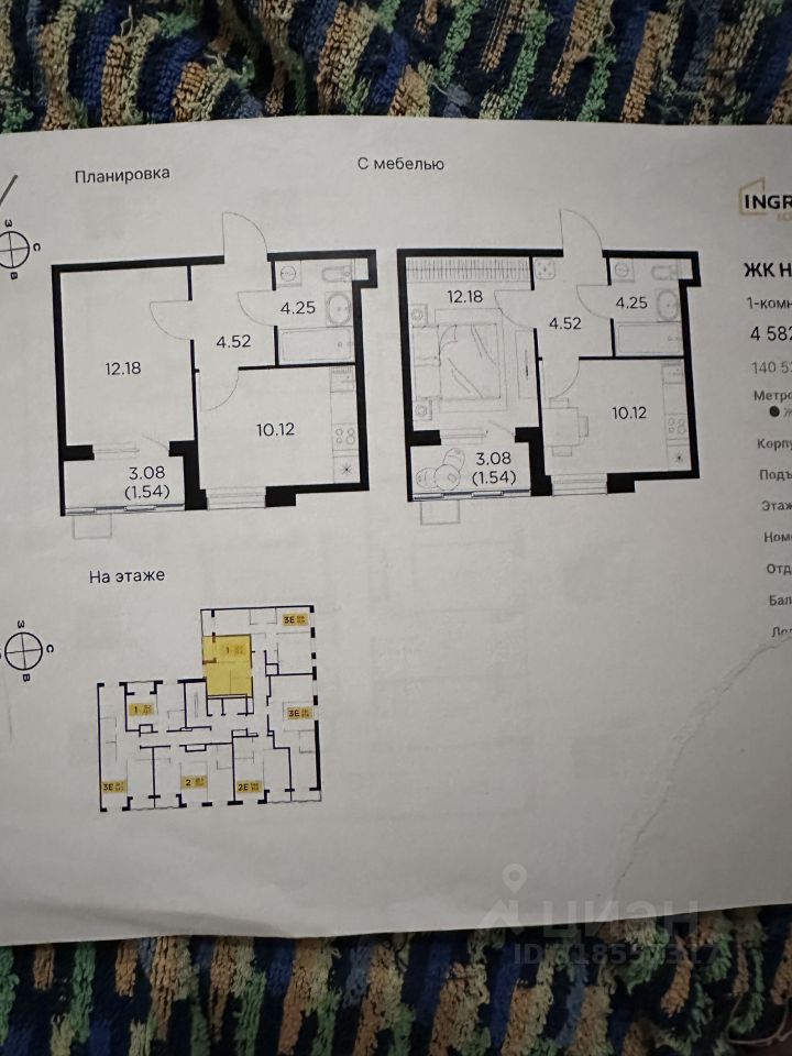 Продажа квартиры от собственника. В жилом квартале комфорт-класса Новое Пушкино (застройщик ГК Инград) продается 1-комнатная квартира площадью 32.61 кв.м без отделки. квартира расположена на 5 этаже 15-этажного дома, корпус 20.
