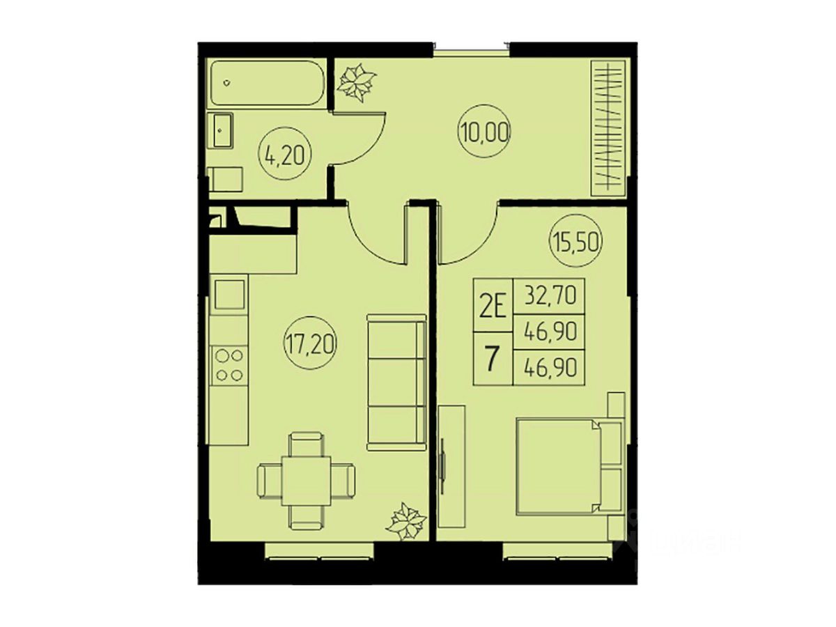 Общая площадь46,9 м²