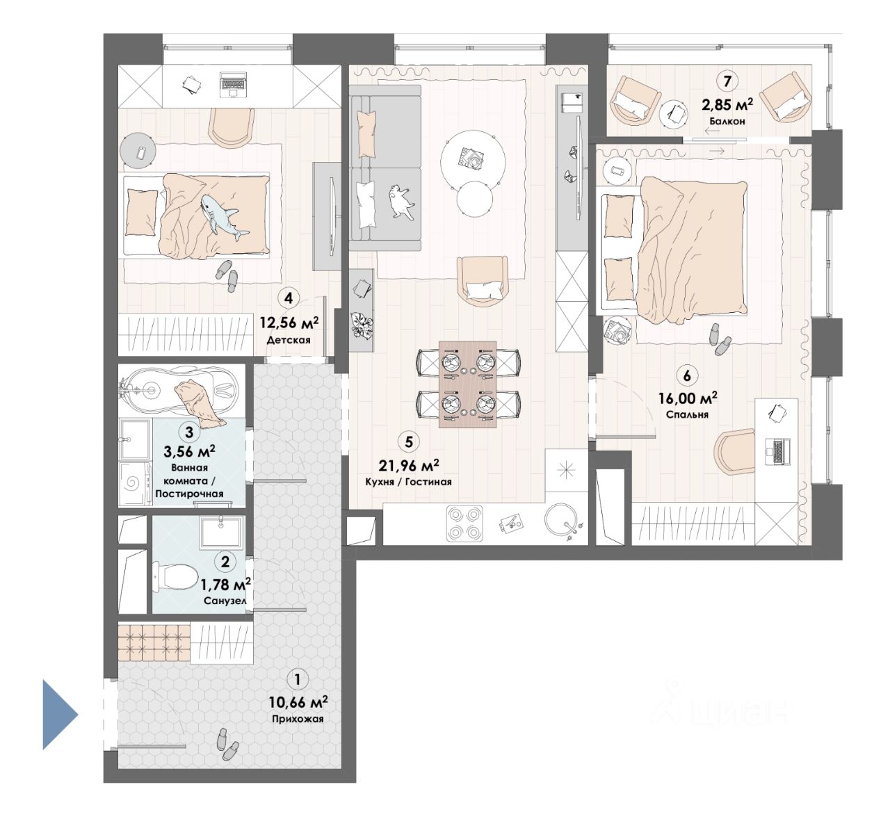 Продаётся 3-комнатная квартира в строящемся доме (Корпус 2), срок сдачи: I-кв. 2027, общей площадью 69.4 кв.м., на 22 этаже. Новый жилой комплекс "Триумф" от застройщика "Корпорация ВИТ" расположен по адресу: Россия, Московская область, Пушкино, Надсоновская улица