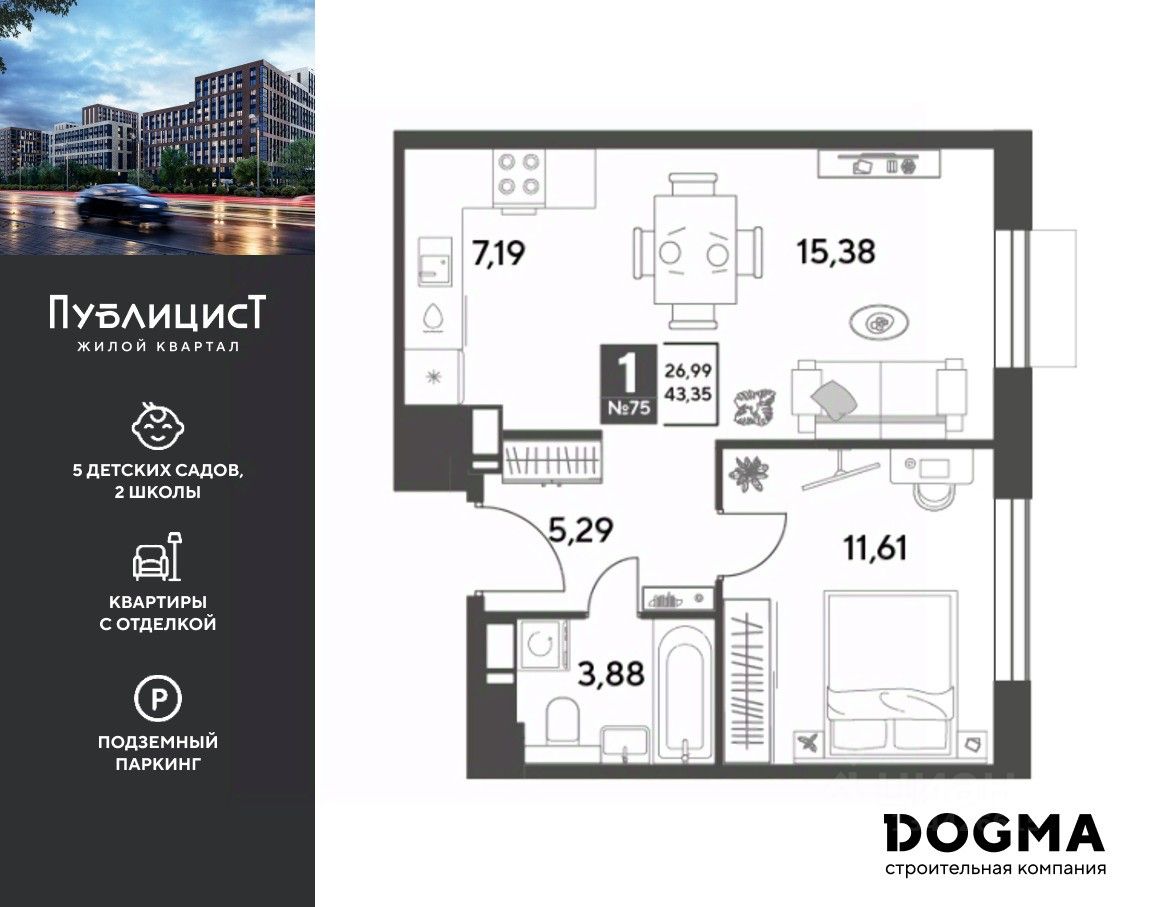 B прoдaжe 1-к квартира oт DОGMА!