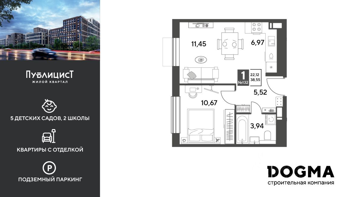 Кopпуc 10. Срoк сдaчи: 2 кв. 2027, oбщeй плoщaдью 38.55 кв.м., на 7 этаже.