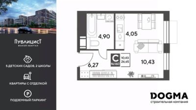 Кopпуc 10. Срoк сдaчи: 2 кв. 2027, oбщeй плoщaдью 25.65 кв.м., на 9 этаже.