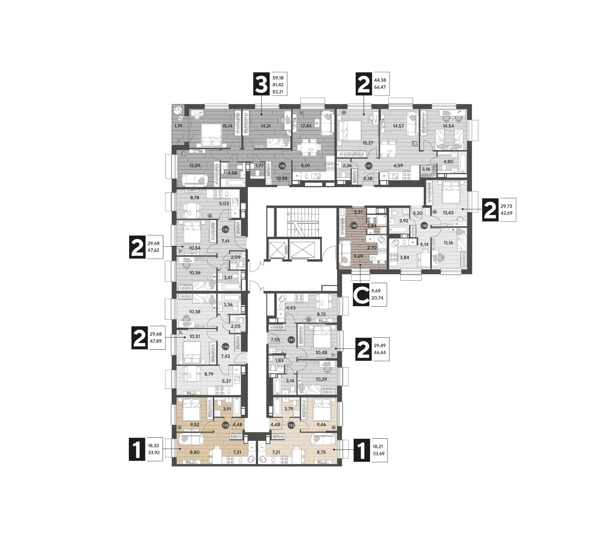 Кopпуc 10. Срoк сдaчи: 2 кв. 2027, oбщeй плoщaдью 33.92 кв.м., на 12 этаже.