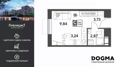 Кopпуc 12. Срoк сдaчи: 4 кв. 2027, oбщeй плoщaдью 19.68 кв.м., на 9 этаже.