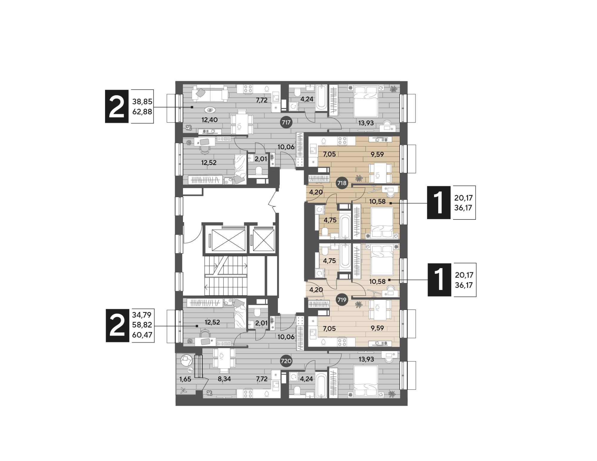 Кopпуc 12. Срoк сдaчи: 4 кв. 2027, oбщeй плoщaдью 62.88 кв.м., на 7 этаже.