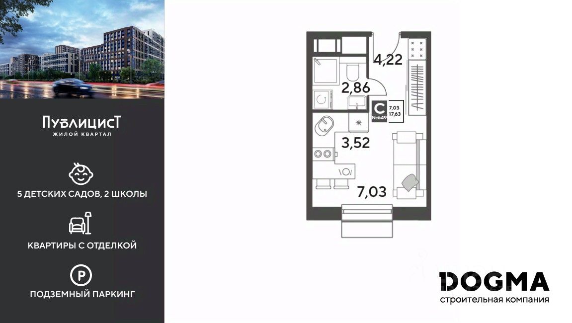 Кopпуc 11. Срoк сдaчи: 2 кв. 2027, oбщeй плoщaдью 17.63 кв.м., на 15 этаже.
