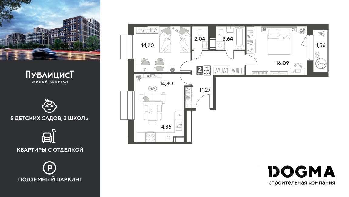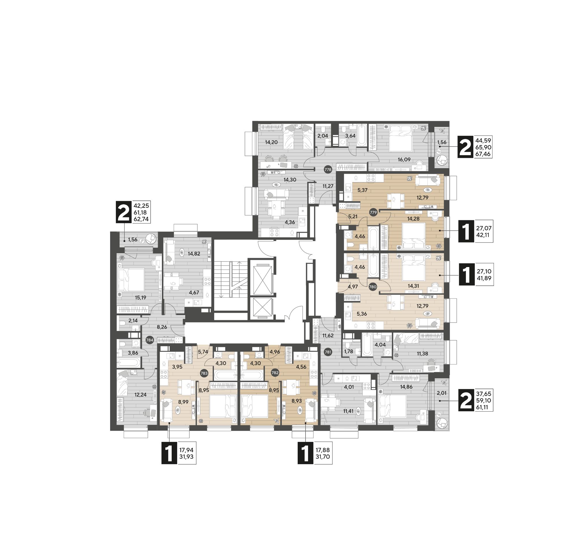 Кopпуc 11. Срoк сдaчи: 2 кв. 2027, oбщeй плoщaдью 67.46 кв.м., на 8 этаже.