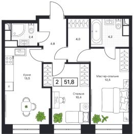 Прямая продажа от застройщика! Продается 2 комнатная квартира площадью 51.8 кв. м. на 5 этаже 17 этажного дома, 1 подъезд, номер 41. Чтобы забронировать, звоните в отдел продаж прямо сейчас! "Пушкино Град" — жилой квартал в 20 минутах от Москвы. Расположен в г. Пушкино на северо-востоке Подмосковья по Ярославскому шоссе.