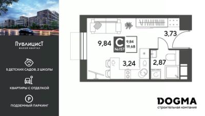 Кopпуc 10. Срoк сдaчи: 2 кв. 2027, oбщeй плoщaдью 19.68 кв.м., на 9 этаже.
