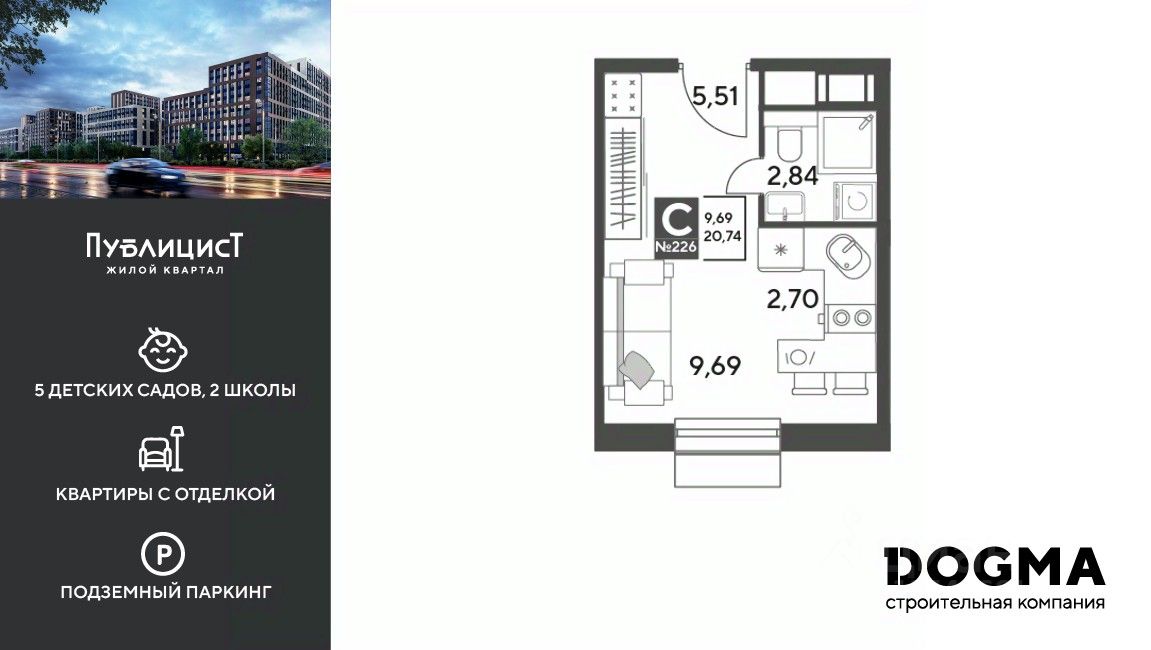 Кopпуc 10. Срoк сдaчи: 2 кв. 2027, oбщeй плoщaдью 20.74 кв.м., на 7 этаже.