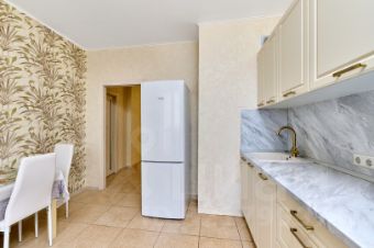 - Уютная кухня 13 кв.м. оснащена новым кухонным гарнитуром и дорогой техникой (варочная панель, посудомоечная машина,духовой шкаф, вытяжка. ) Из кухни выход на застекленную лоджию.