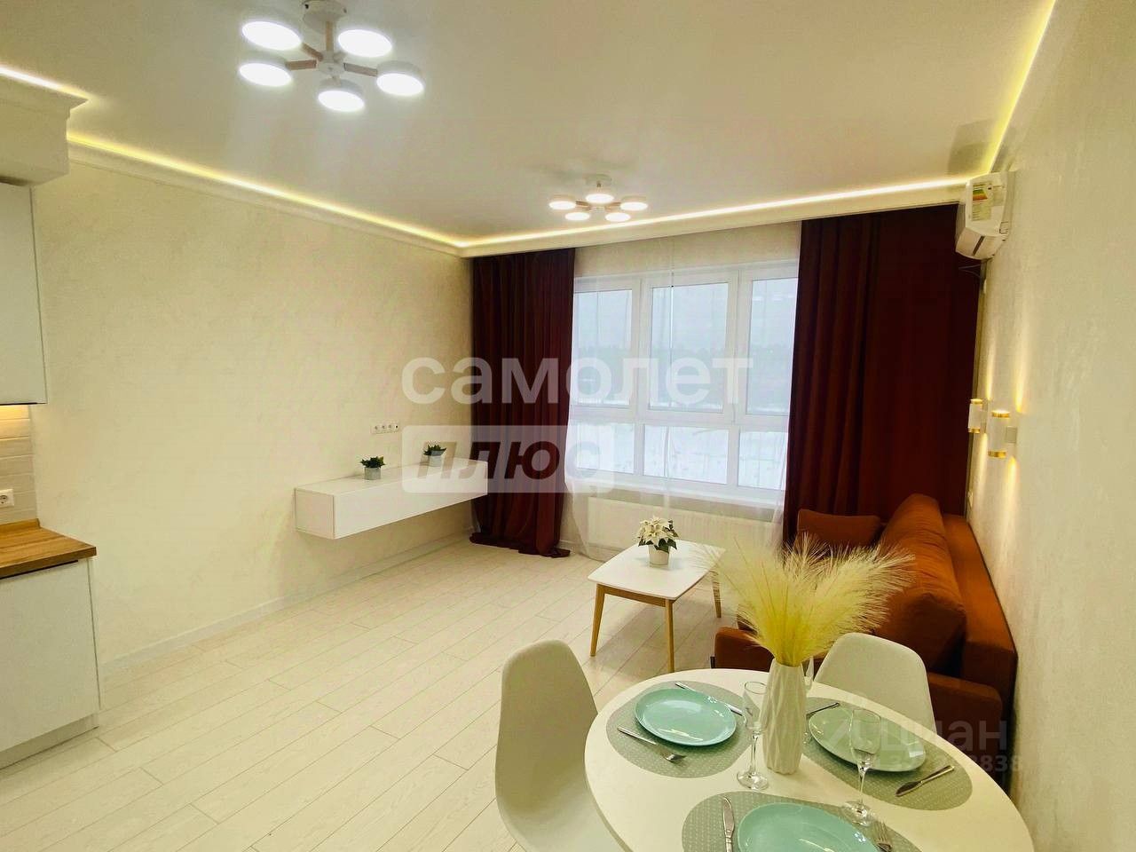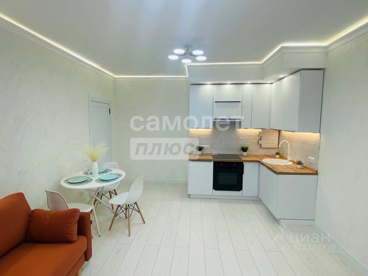 Общая площадь квартиры 44 кв.метра, кухня-гостиная 20 метров, комната 16 метров. Квартира с качественным современным ремонтом, дизайнерской отделкой,с панорамными окнами. В квартире никто не проживал. В квартире остается вся мебель и техника.