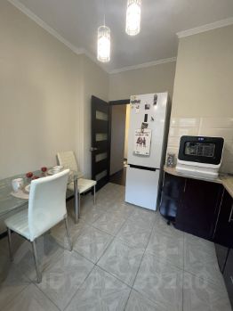 Кухня полностью оборудована встроенным гарнитуром и бытовой техникой (варочная поверхность, духовка, микроволновка...).