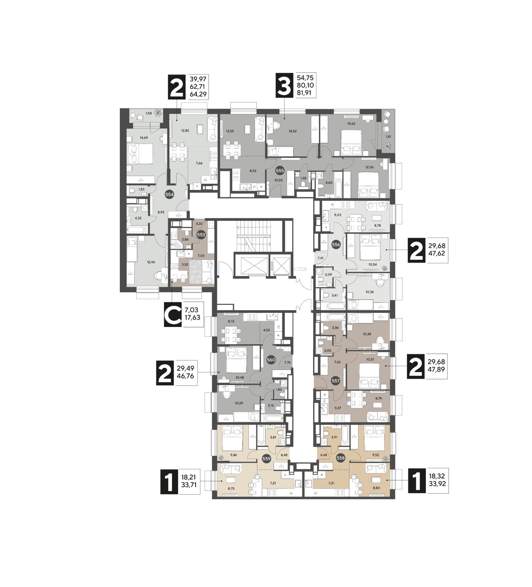 Корпус 7. Срок сдачи: 2 кв. 2028, общей площадью 47.62 кв.м., на 4 этаже.