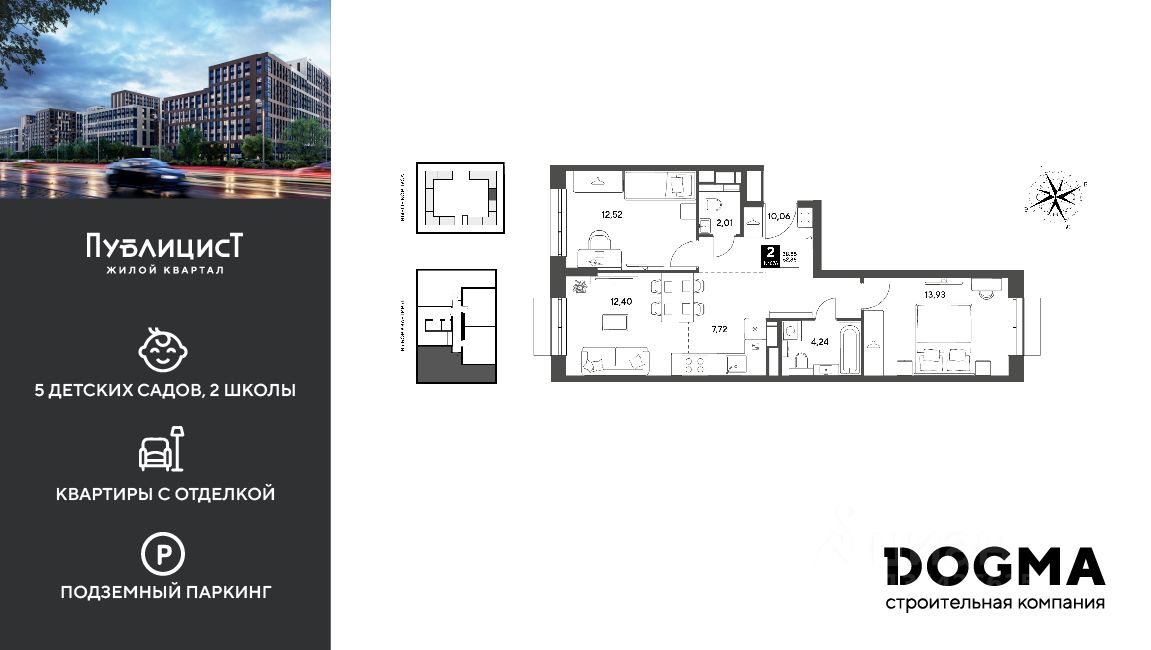 Корпус 7. Срок сдачи: 2 кв. 2028, общей площадью 62.88 кв.м., на 6 этаже.