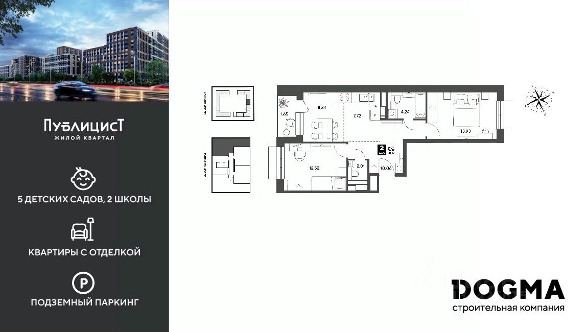 Корпус 7. Срок сдачи: 2 кв. 2028, общей площадью 60.47 кв.м., на 10 этаже.