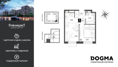 Корпус 7. Срок сдачи: 2 кв. 2028, общей площадью 31.93 кв.м., на 2 этаже.