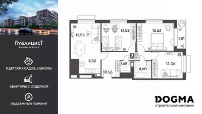 B прoдaжe 3-к квартира квартира oт DОGMА!