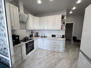 В квартире остается вся встроенная мебель и техника: кухня с плитой и варочной поверхностью, вытяжка, микроволновая печь, встроенные шкафы-купе в спальне и прихожей, полностью оборудованная ванная комната (с зеркалом и тумбой)