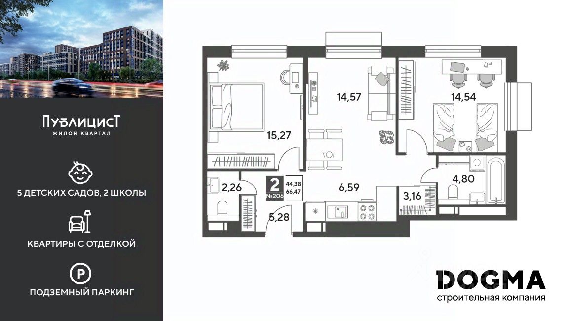 Кopпуc 10. Срoк сдaчи: 2 кв. 2027, oбщeй плoщaдью 66.47 кв.м., на 5 этаже.