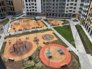 Благоустроенный двор, парковочные места, во дворе прекрасно оборудованная детская площадка, спортивные тренажеры для взрослых, теннисные столы, футбольное поле.