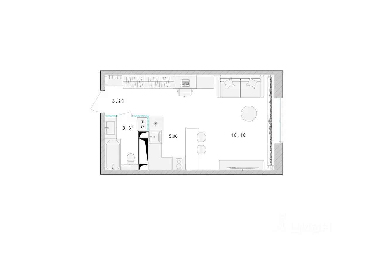 Продаётся студия в сданном доме (Корпус 1), срок сдачи: 4-кв. 2023, общей площадью 30.20 кв.м., на 8 этаже.