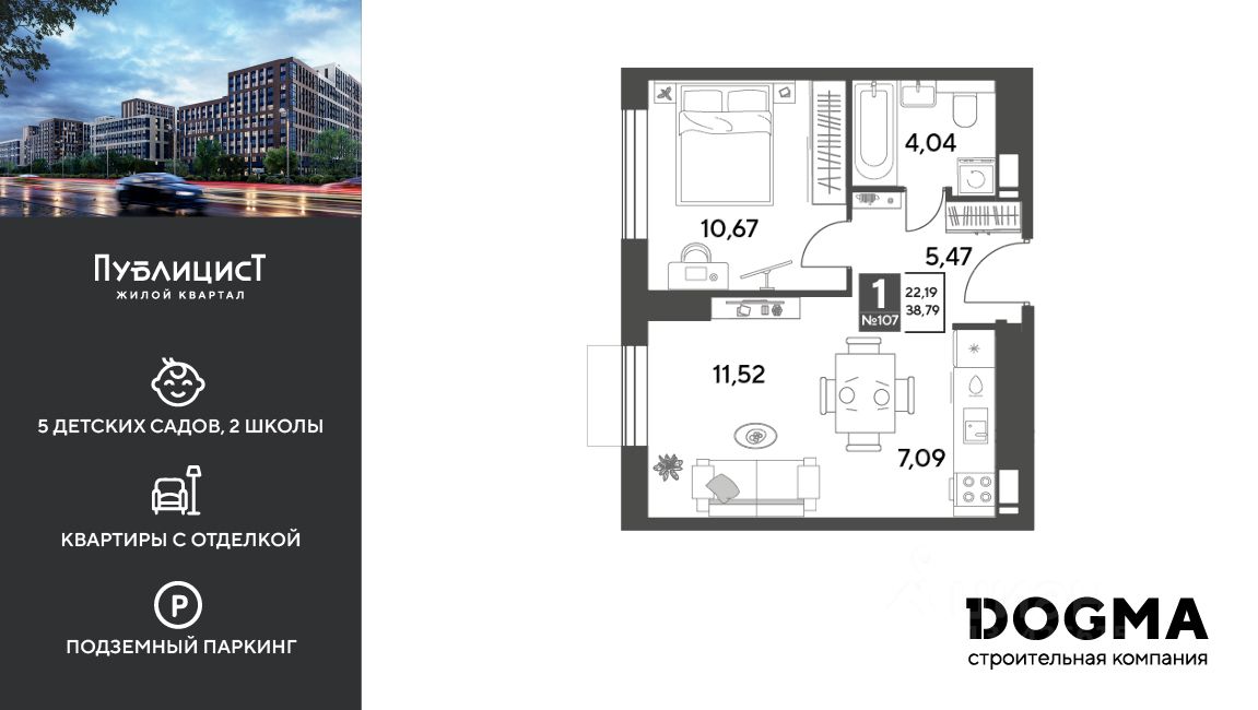 Кopпуc 10. Срoк сдaчи: 2 кв. 2027, oбщeй плoщaдью 38.79 кв.м., на 5 этаже.