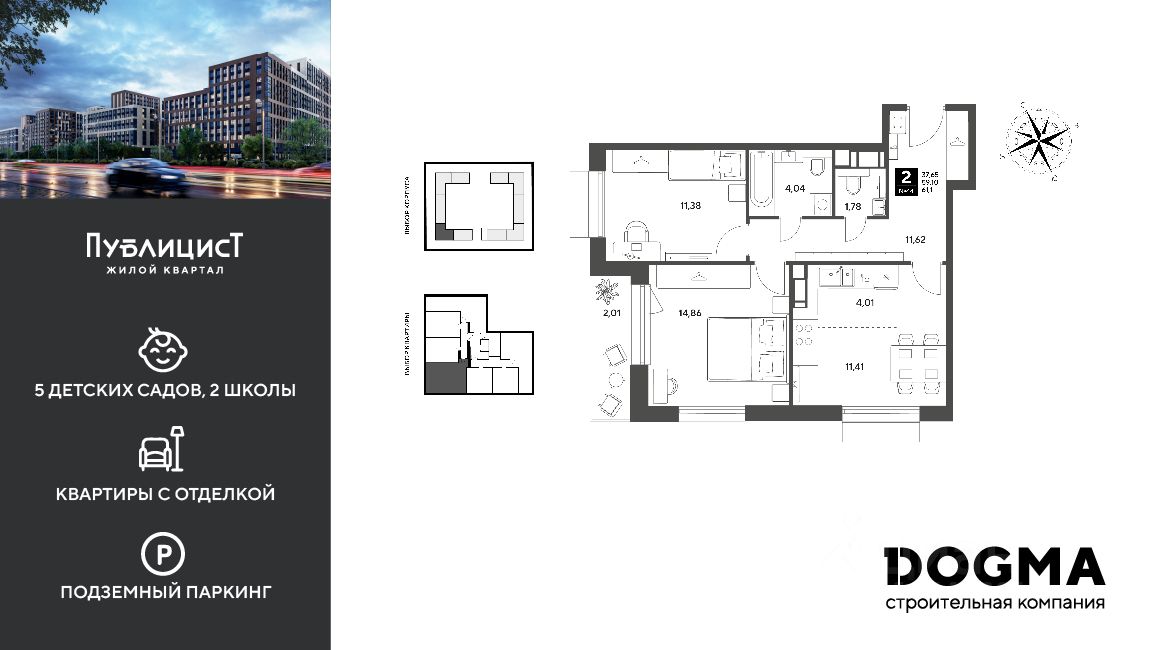 Корпус 7. Срок сдачи: 2 кв. 2028, общей площадью 61.11 кв.м., на 2 этаже.
