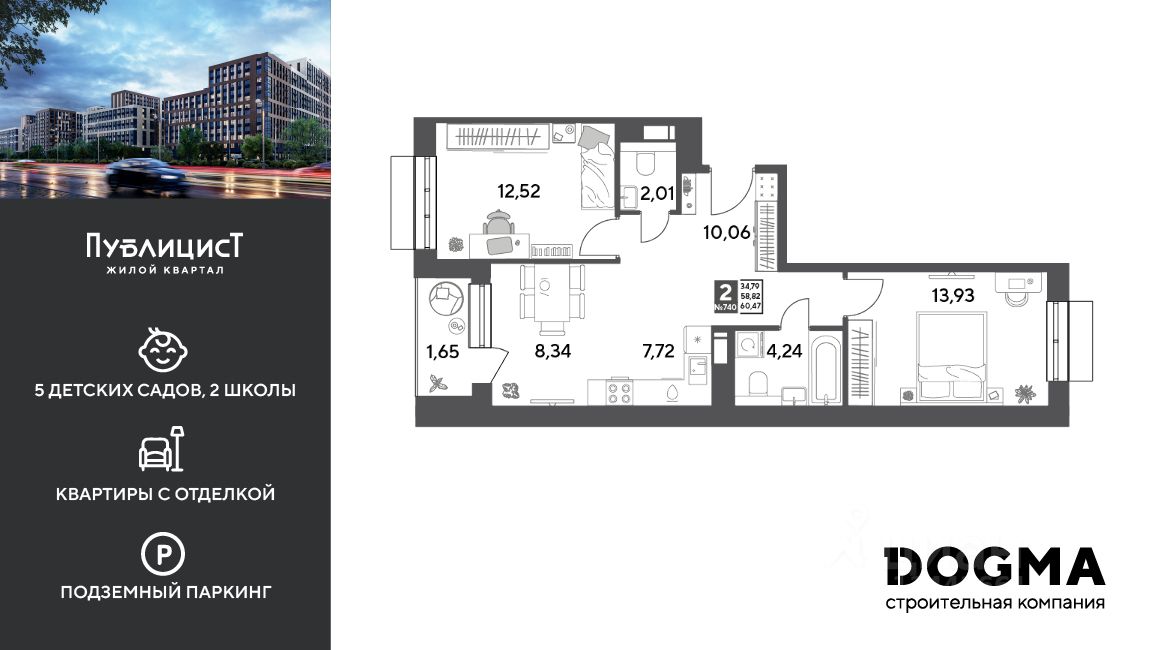 Кopпуc 12. Срoк сдaчи: 4 кв. 2027, oбщeй плoщaдью 60.47 кв.м., на 9 этаже.