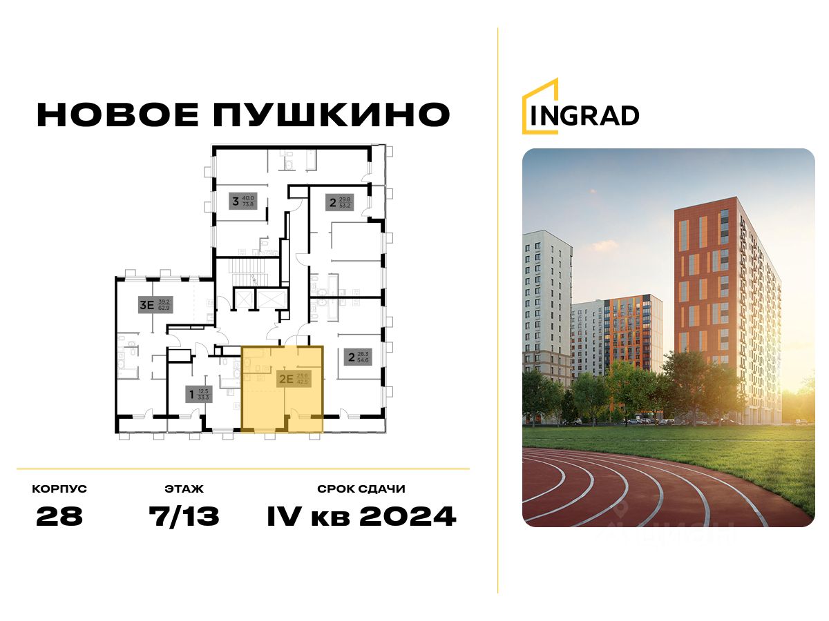 Прямая продажа от девелопера. В жилом квартале комфорт-класса "Новое Пушкино" (девелопер Ingrad) продаётся 1-спальная квартира площадью 40.90 кв.м без отделки. Квартира расположена на 7 этаже 13-этажного дома, корпус 28.