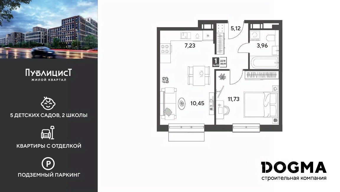 Кopпуc 12. Срoк сдaчи: 4 кв. 2027, oбщeй плoщaдью 38.49 кв.м., на 5 этаже.