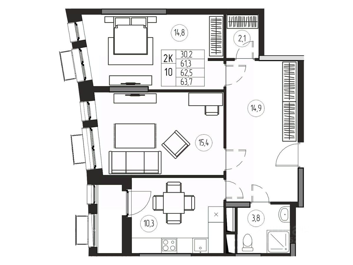Общая площадь62,5 м²