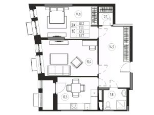 Площадь кухни10,3 м²