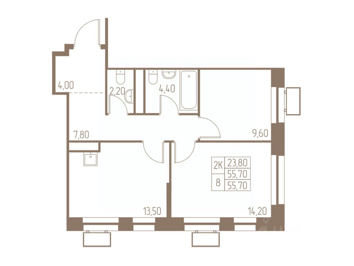 55,7 м²